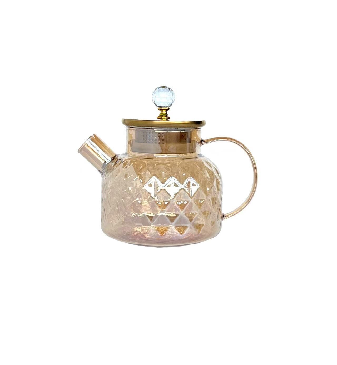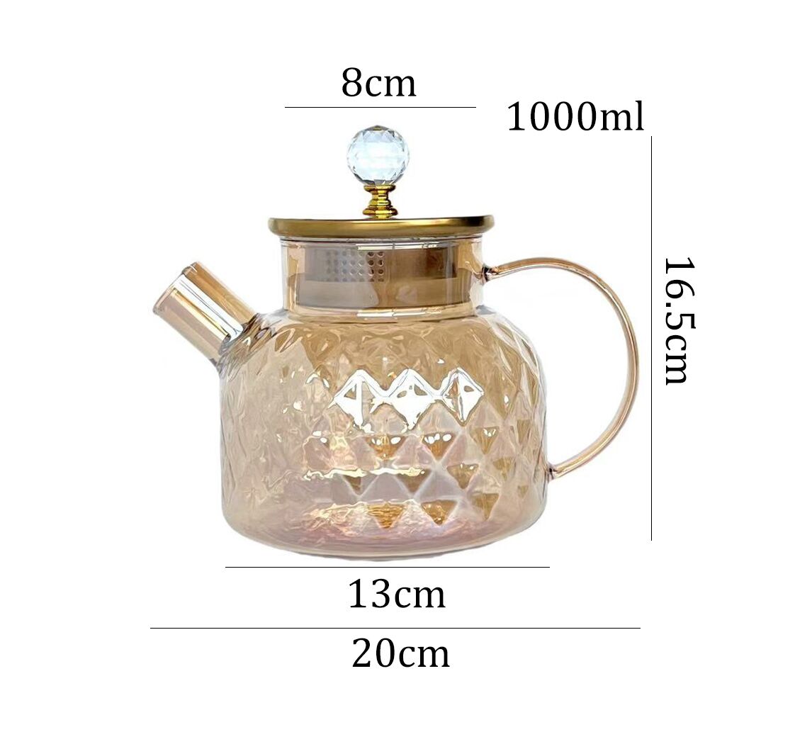 This amber glass teapot is safe for stove top for boiling water. It equips a removable infuses made of 304 stainless steels. The stainless steel lid with silicon seal is watertight. Making a functional infuser tea pot for loose tea.