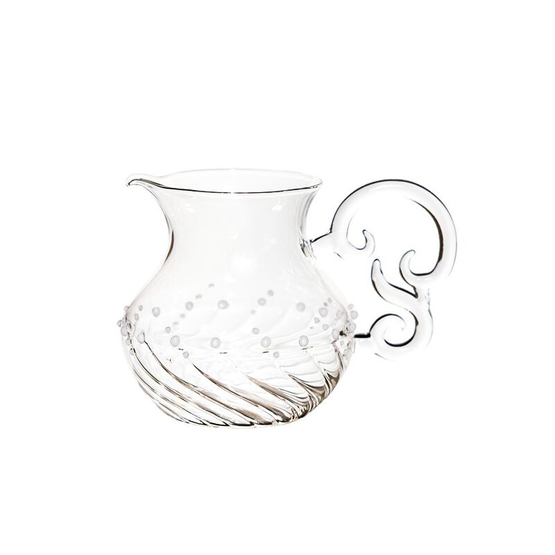 Hand-made heat resistant borosilicate glass teacup,The ergonomic design of the kettle handle is cloud-shaped, which is beautiful and not hot to the hand. Purple or pink or green or clear dot around the body to decorate to make it look more elegant. It can make the tea less bitter.
